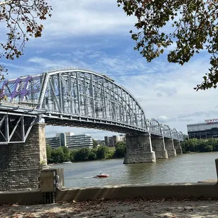 Great accessible bridge. Really fun to be able to stand "two places at once" at the Ohio/Kentucky border. Bridge is fun to walk and look over and see all the boats and activity on land. Great chill afternoon activity with kids or just to get some gentle exercise. The purple part is also awesome. Loved going across and back.