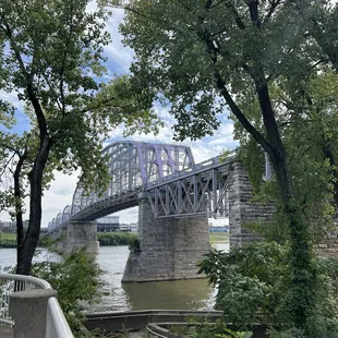 What a fun way to observe and experience the Ohio River. We saw lots of walkers and runners while enjoying our stroll and spent time enjoying the history lesson on plaques on the Ohio side. The walk is not too long and there is plenty of room for everyone to walk and run at a different pace without getting in each other's way. We took lots of pictures along the way and enjoyed the experience although I would have expected more of the bridge to be painted purple!