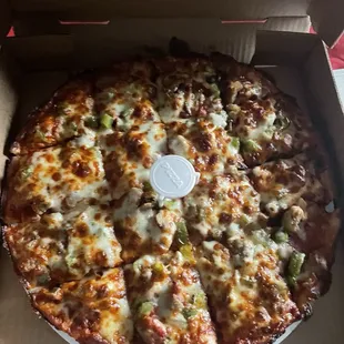 Great Pizza. Made to perfection. Crunchy crust and cheese melted perfectly. Great prices too. Will definitely be coming back.