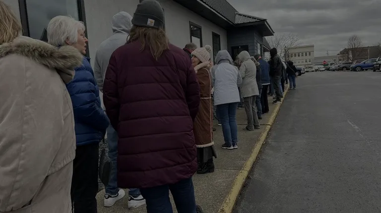 Getting closer after two hours in line