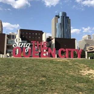 Sing the Queen City is a massive and fun sign that sits off the banks of Cincinnati Ohio Waterfront area. A very fine welcome to the city from the folks like me coming from Kentucky. I do know two major cities claim to be the Queen City. Charlotte and Cincinnati. Cincinnati with this sign is putting there stake to that claim in bog red bold letters literally. Me and my family was on a weekend getaway and waking the waterfront between the cities professional baseball and football stadium when came across this cool and fun sign. Overall great piece of public art that makes for a great photo op and scrap book picture to commentate ones visit to the city.