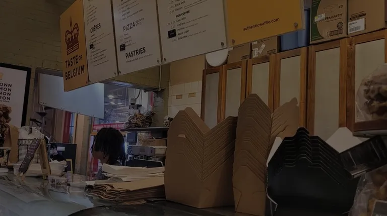 I think I might have inadvertently now have visited every ToB location...We wandered around Findlay Market early on a Saturday morning, taking in what was open and deciding what to have for breakfast. I am in the midst of a (*grumble grumble*) nutrition program, so I had to walk past some awesome looking donuts and burritos from other spots in the market. I spied the vegetarian crepe at Taste of Belgium, and that didn't totally blow my diet out of the water! Aside from just how much goat cheese is in it... (which, personally, give me all the cheese! To report to my coach..."oh baaaarely any cheese!).The savory crepe was tastier than I could have hoped for! Spinach, roasted red peppers, the aforementioned goat cheese, and topped with a balsamic glaze drizzle thing...crap, it is delicious! The crepe was also cooked and readied for my eating pleasure in an expected amount of time. And thankfully, our group was able to find a table nearby to eat at, since some of our food required knife and fork to eat.It is a decent choice for food in Findlay Market, but honestly, I am more likely to stop in at any sit down, table service Taste of Belgium to properly enjoy my experience there. Still, good food!