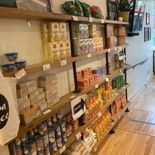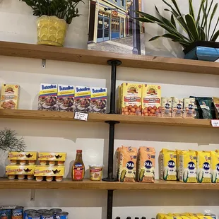 a shelf of food