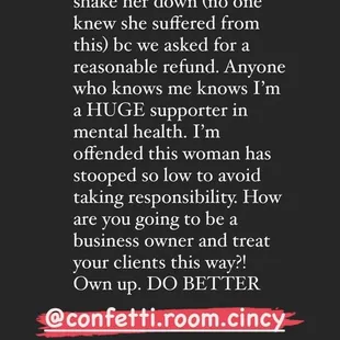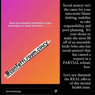Terrible experience. I recently attended a wedding at The Confetti room and was appalled by how unprofessional and disrespectful this owner is. Day of event the venue coordinator the bride paid extra for did not show. We all understand we are living during a pandemic, however, there was no warning or call from coordinator or venue to tell them. The bride just showed up to a venue with no coordinator, no staff, and nothing decorated as guests arrived. The stress caused her to have a panic attack while her family and third party caterers (the real MVPs!) ended up scrambling to decorate the venue and bartend (venue's job). After all of this she contacted the owner to let them know what happened and was treated with immediate hostility. The owner first lied to my friend (bride), then blamed her, and finally accused the her of attacking the owner. I thought the initial lack of organization was bad enough to warrant a review but the way this owner treated my sweet friend was appalling, wildly unprofessional and downright rude. DO NOT RECOMMEND. Save your money and go someplace else!