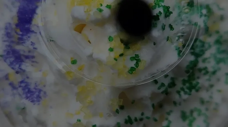 Iced almond milk Mardi Gras latte.