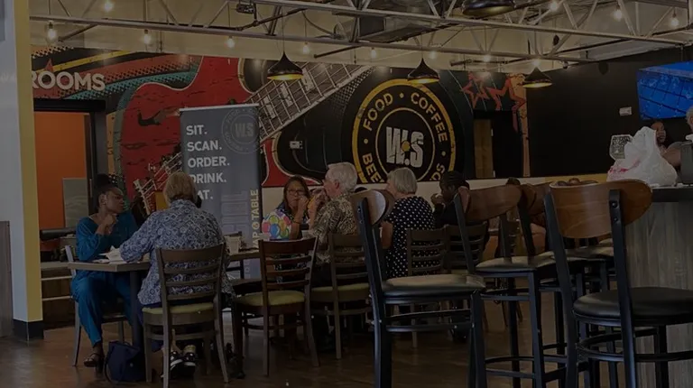 It's the newest trend in casual dining- the food mall. I love this place- it's vibrant and hopping with folks of all ages and ethnicities. The central bar is quite impressive with a couple dozen beers on tap, all kinds of liquor that you won't find in an average bar. Even port. And, their own house margarita also on tap! Bar service is very good, attentive, and the barmaids are professional and knowledgeable. You can even get a breakfast cocktail here any day of the week!It's got the exposed brick/industrial look, high ceilings, and it's loud. They have a collection of board games if you're so inclined. Sit anywhere you want. Mostly tables but there is a small number of booths, you might get lucky. Walk up to any of the five independent locally owned takeout counters, place your order and get a pager to be notified when to return to grab your food. Or do it with a smartphone - if you're so inclined. Me, I prefer the face to face interaction with the friendly and enthusiastic staff.The place is kept very clean, tables bussed and wiped and floor swept after the patrons leave.The coffee bar is really part of the actual bar. I have not seen a significant amount of bakery offerings, maybe earlier in the day? I'd go full five stars with maybe one more dining choice, and/or something a little more special than tacos in one of the slots. But all in all West Social is a great option, very unique, and I'm definitely a fan.