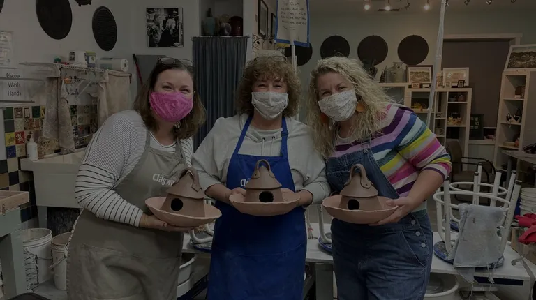 A class of pottery students.
