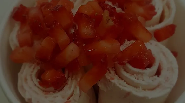 Chocolate ice cream with strawberry topping