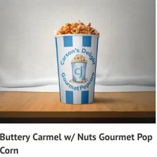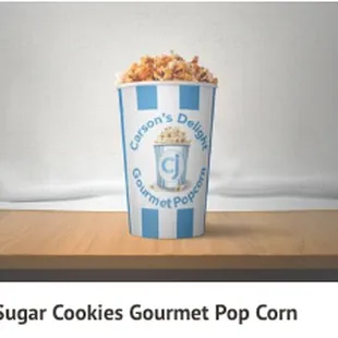 a popcorn cup with popcorn in it
