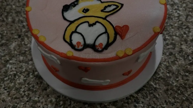 a cake with a dog on it