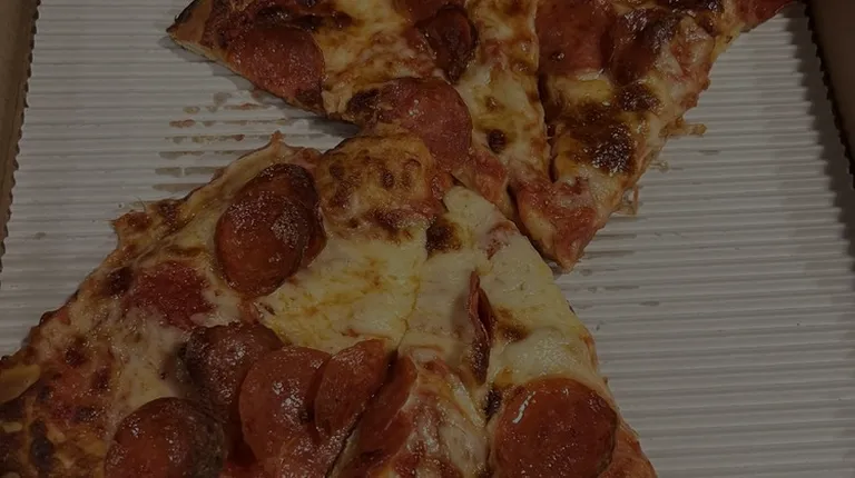 Undercooked but also overcooked pepperoni pizza. Flat burnt crust.