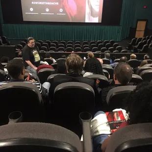 I saw a private viewing of Color Purple. We met in the private room in the front it was clean and spacious for our group. The theater for our viewing was also clean and very spacious. The chairs were comfortable. The concession stand line was long but the staff were fast and efficient. The price ofConcession was decent I got a nacho combo for 12 dollars and some change. The bathroom was horrid but other than that we had a good time.