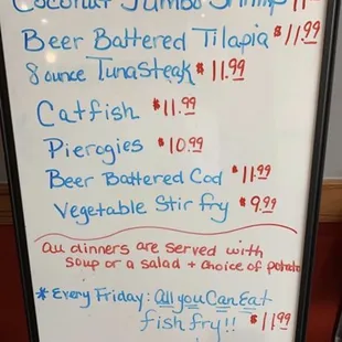 I stopped in solo after shopping around 4:30 PM. The restaurant was totally empty.I ordered chicken noodle soup (sadly, the crackers were all stale). The soup Average. I ordered the fish & chips dinner. Two small pieces of fish. The baked potato was excellent.The coleslaw, I was afraid to eat because it tasted like vinegar. All in all, I'm going to order only breakfast if I return. (What they are known for). The server was friendly and welcoming.The wooden table top was very sticky and gross feeling.