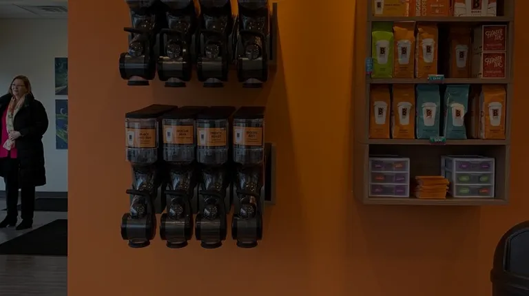 So cute and friendly! There are a zillion choices of coffees with toppings, so take your time and ask questions. The baristas will help you order. Menu signs are on the wall. Lite bites are available. Ask for coupons! Coffee items are for sale. Currently, seating is two tables outside. Parking lot is small, but all is handicapped accessible. Biggby is located on the east side of the circle at Lee and Fairmount.