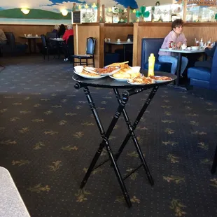 Stopped 9 am ish. Hubby ordered Eggs Benedict and I was able to order from the lunch menu and had the Gyro plate. Both were fantastic! Waitress filled our drinks and was available but didn't hoover. The check was reasonable too!