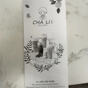 a menu for a tea shop