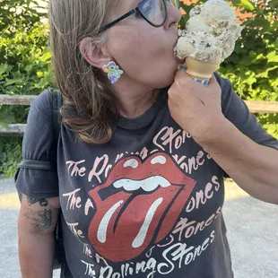This is our second time visiting Canal Fulton for a running event. The one place we were really looking forward returning to was this ice cream shop!! They are cash only as other reviewers have mentioned, and there likely will be a line because their ice cream is so good! But the line moves quickly, and the workers are really nice. I wanted a cone, and there are two options: cake or waffle cone. I went with the small waffle cone with mocha almond fudge. Even the small size it huge! Yum!! Around back there are picnic tables to sit at and there's an overhang, so it's shaded. It was a perfect treat on a hot day.