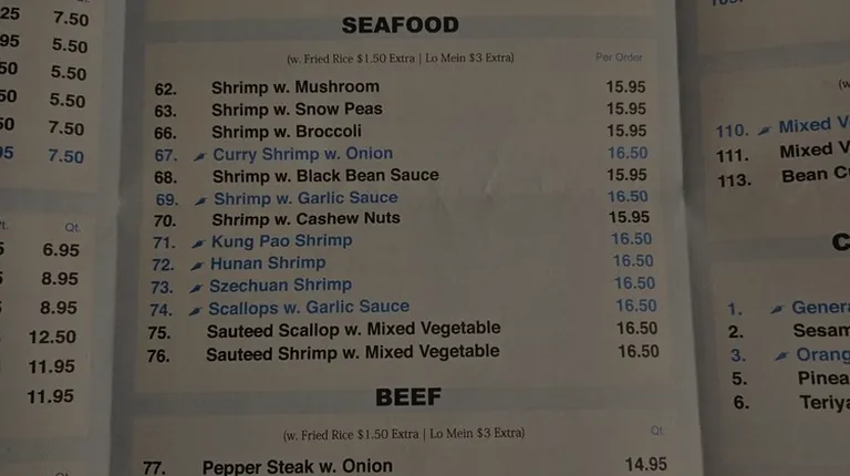 Two orders of sweet 'n sour chicken and asked for brown rice. He said, "It's already brown."It wasn't brown. It was yellow in color, probably fried white rice. The deep fried chicken was a heavy thick batter with little pieces of chicken. Both the rice and chicken were extremely dry. It was a cotton table cloth being reused by each customer, cute but not hygienic. We're from out of town, and do not recommend this establishment unless you're looking for a belly ache.