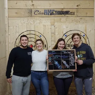 What a thrill! Get the right group together and it'll be a blast. I was nervous about how the experience would be, but I ended up having such a good time, both with friends and the strangers on our lane.For purchasing tickets/reserving a time:I bought a Groupon (discounts, yay!!) for 6 people - One 90-Minute Axe Throwing Session for Six. It was simple to register on the Class Axe Throwing website as there as specific instructions for those with a Groupon code to redeem. Keep in mind that there are some fees associated when you register, but Groupon frequently has deals for a certain percentage off an activity, to offset those costs. Each lane can hold up to 12 people, so if you want to bring a group in you might want to have one person book it online (or call about their private event reservations). If the lane is booked, with only a few people from your party, you'll be mixed with other strangers - don't worry! It should be fun, so long as nobody gets extremely competitive or is a sore loser.Axe throwing:Pro tip - come ready with a pun-worthy lumberjack name for yourself. I scrambled last minute but eventually came up with "Professor Axe". Our lane had all 12 spots booked, so my party of 6 was mixed with another party of 6. Our instructor, or better known as our "Axe-pert" (Sir Axe-a-lot), split us off into two teams (also think of a team name), and carefully went through how the next hour or so would go. Not gonna lie, I was pretty nervous. Sharp objects and casual BYOB over in the back with strangers? Usually, I'd go running in the opposite direction, NOT paying to go! Our instructor was very VERY clear as to how we were to handle the axes and when we were allowed to throw or retrieve our axes from the target (or, more often, the ground). One person from each team, in order, goes up and throws to their respective target. There are two type of throws: using one or two hands. The instructor was very attentive after each one of us threw to give us advice to be successful in sticking the target. Things like when to release, or how to hold the axe - all of which were so helpful, that all of us were able to improve in the span of a few throws. After we had each thrown a few, we started the competition. We did 2 different team games vs each other and then a free-for-all where each person had 10 throws and the highest score won! I want to note, that by that point, most people had at least hit the board or gotten a bulls eye! If you didn't, the instructor pulled you aside to let you throw a few on an empty lane while he gave you tips. With 12 people there, I was very happy to see that he was so attentive and made sure everyone was having a good time, even if that meant sticking the board at least once. They were also very generous when people hit the line for the bulls eye - each person got a photo with their accomplishment! I think they post them on their facebook website shortly after. All in all, I'd highly recommend this activity for group events! You can bring your own beer (please be safe about it!!!) and they even have mini fridges to keep it cool for you as you play. I'm already thinking of the next time I can get a group to go!! So much fun! They still have Groupons available, so check there first for a discount!