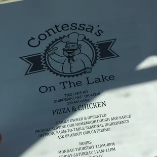 My wife and I opted for some truly great pizza and since we really enjoy those baked at Contessa's, I went there to order and take them home.They are located in a stand alone building on the west side of Lake Road in downtown Chippewa Lake, and have parking for 3-4 cars plus a handicapped spot. There is even a wheelchair ramp.Right when you enter, you are privy to the front counter and the entire kitchen area. On the left, you see a special rotating oven whose racks rotate around a drum, as opposed to a flat oven where you throw the pies in and hope they are evenly fired.This rotating oven is very unique and is the reason why their pizzas taste the way they do. They only use the freshest ingredients, and are generous with their toppings.There is a beverage refrigerator to the right, and the entrance into a large eating area. Both the kitchen and the seating areas are bright and well lit. Everyone was happy and very helpful in choosing the right size and combination of toppings.My wife & I each tried their white sauce pizza. She ordered a medium with chicken mushrooms and black olives. I a double chicken with onions; then waited to drive them home. Both were delicious!So if you and yours have a hankering for pizza that isn't paper thin so the toppings fall through or so thick it is like eating a loaf of bread, try Contessa's medium crust pies.Their friendliness and excellent pizza will have you coming back for more!