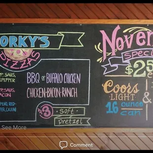 a menu on a blackboard