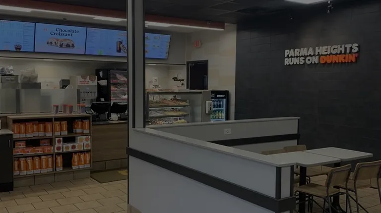 a car parked in front of a dunkin donuts store