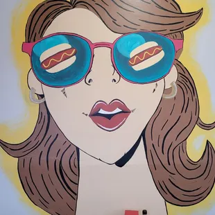 a woman with sunglasses painted on the wall