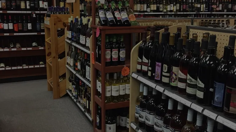 shelves of wine in a store
