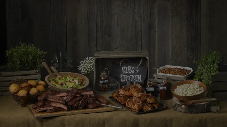 ows a tray of barbecued meat