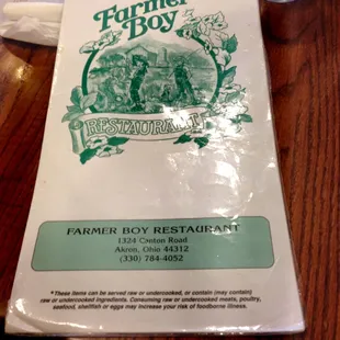 the menu of the restaurant