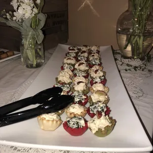I live in Los Angeles and was looking for a catering company to cater my sisters baby shower this summer and came across Food For Thought on Yelp. Their website & diverse menu drew me in instantly. Food for Thought was professional, courteous and accommodating from day one of contact. Wendy Vlach was such a pleasure to interact with and her communication was above par! She was so quick to respond to all my crazy emails with special requests and more than accommodating! I wish i had gotten better pics of the absolutely delicious and elegant food! Pictured from top far left: tomato basil caprese with balsamic reduction, pork & beef tenderloin with baguettes & choice of horseradish cream sauce, cranberry mustard chutney & rosemary cream. Apple walnut salad with lemon vinaigrette dressing. Crab cakes with lemon garlic aioli. Herb mashed potato bite, fruit skewers and phyllo cups with California chicken salad, spinach dip and roasted veggie goat cheese. The young lady that delivered the food and pictured deliciousness was 15 minutes early and was so incredibly professional, courteous and accommodating.If I could give 10 stars I would!!!! Thank you Food For Thought!!!