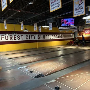 Indoor shuffleboard courts