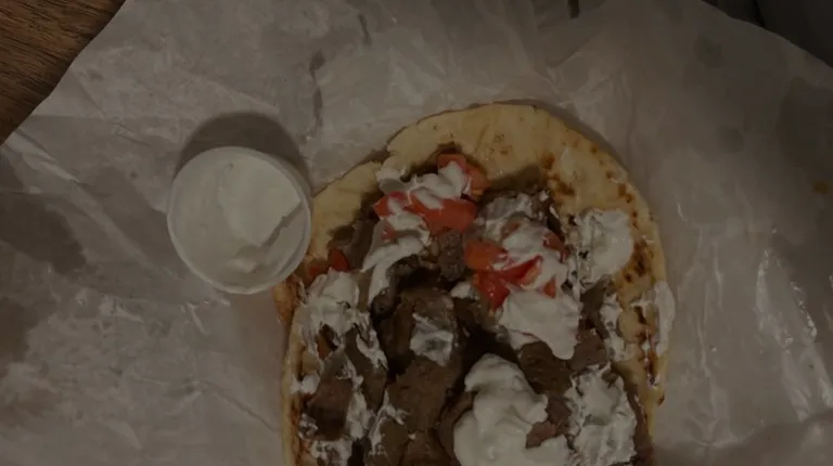 Tomatoes are just small, diced tomatoes less than 10 cubes(not wedges as shown in picture) . No seasoning on pita or tomatos.We asked for no onions. :) they did not add, Thankyou.Tastes like the bag of gyro from Costco. I was not impressed with the quality of meat... very dry, and seems like it was made another day ago. The portion of Meat is a lot, but the quality is not. I purchased three regular gyros,(almost $40) and for the price I paid I probably would not be going back. They did not have any additions. Just the three gyros, no fries no sides nothing else for $36.24Also our kids did not like the seasoning of the food they did not eat 1 bite.(under 5years of age) The taZieke sauce was missing something, but it tasted fresh. Also, if you have any kind of lactose issue, stay away from the sauce, you will be occupied for the next hour or two. :P lol Enjoy!