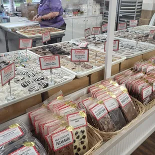 There is more than one Grandpa's Cheesebarn location. The one we visited was in Norton, Ohio, and its signage named it "Best of Grandpa's Cheesebarn | Sweeties Chocolates."This is not an expansive store -- you can see the whole thing from most places inside it -- but there are SO MANY types of cheese available! There are also many varieties of chocolates, candies, jams, jellies, and sauces. There are even fun selections of soda pops, pickled eggs, and meats.We saw workers actively making chocolates during our visit.This was a neat place to make a short stop to break up a road trip, and the items sold there would make fun gifts, too.