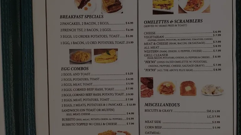 Breakfast, nothing over $8.95 for a chopped steak w eggs
