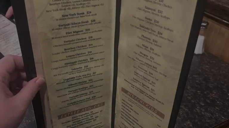 Pretty much your standard Hibachi style Steakhouse. We had a Groupon to use, and had a good experience. They have a regular dining room when you walk in if you don't want to do the hibachi experience. They take you in the back for the hibachi. Our server was attentive, and the chef did an awesome job. He was really engaging and funny. I've been to plenty of Hibachi Steakhouses and he was one of the best I've had. He called my noodles spaghetti the whole time and told everyone the shark filet was caught in Lake Erie haha :) dad jokes galore You get the standard onion soup and side salad with a hibachi entree. One different thing is that fried rice doesn't come standard with the meal. They bring out a separate bowl of steamed rice. However, you can upgrade for $2 to traditional fried rice they cook on the flat top in front of you, or $3 for noodles cooked on the flat top. I'd recommend splurging for the fried rice. The portions are still big, but I wouldn't say it was as humungous a pile of rice and veggies as other places, but that's totally fine. It was a normal portion, not a stupid portion. My favorite part of the meal was the salmon. It was fantastic. I got a combo with that and ribeye. And while the ribeye was good, I wish I got the salmon fillets instead of the combo of 1 filet and half a ribeye. Somebody ordered shark at my table, and while I was a little too timid to go that route, it looked fantastic. I'd get it if I came back. They didn't seem to skimp on the scallops or shrimp if you ordered them. The whole process took about an hour and a half on a weeknight. It's an experience though, no complaints. They were also very good about honoring the Groupon I had. No problems on that front.