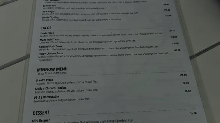 The music was great. To bad you can't eat the music. Food not good at all. Got perch sandwich. All breading. Fish was hard to find in the breading. Zucchini fries were also all breading. Zucchini was thin as a thread. So disappointed. Will not return.