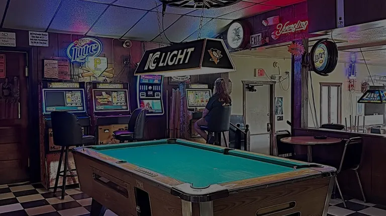 Typical older bar as far as appearance. A little dingy on the bar side of the building. It is a large space and also has a patio. They have a good number of pool tables and skill games. Tried the pizza because that is what this place is known for. While it was good I would not say it is the best pizza I've ever had. I do like the fact that the toppings go clear to the edge of the thick crust so there is never a crust only bite. The day we were there our food came out quickly. For those who might not realize you order at the bar then the food is brought out to you by a kitchen worker.