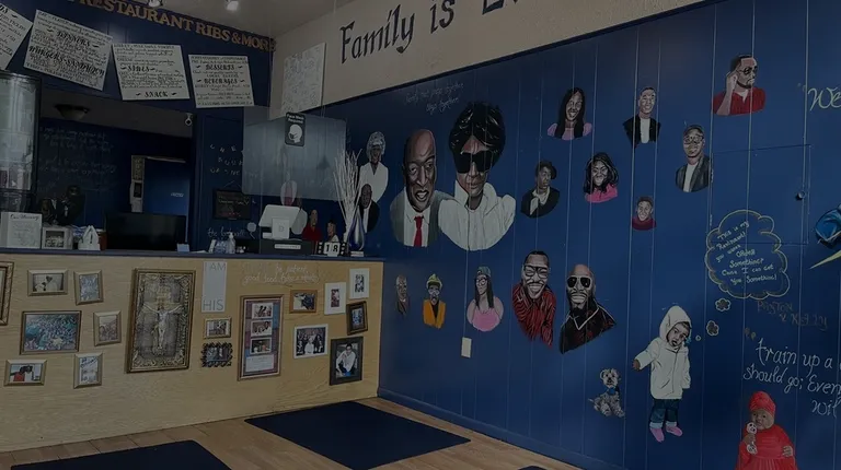This place pop up on yelp for RIBS , I thought I would try them out and to my surprise this place is the rib/bbq joint for me, I live on the east side I would drive all the way for this food, I love the wall, painting makes you feel like big mama back there doing what she do, hey yall don't skip on this place maybe a hidden spot but worth the drive , I would definitely be back and when I need a small gathering catering they will get the call, just hope won't be disappointed, service and food was great. Thanks so much.