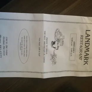 Hmmm... well, I feel set up for disappointment. Based my pick to come here on two menu photos here in Yelp. Was looking forward to ordering a bowl of some sort.Those menus do NOT go with this Landmark Restaurant! But I drove separate from my mom, so we just went with it.We were there for lunch, but their specialty is clearly breakfast. This is an inexpensive place, so kudos for that. The service was good. The bathroom was clean.And I enjoyed the chicken & rice soup. The tuna melt was edible, but not much more. But hey, it is, what it is. A quick, little inexpensive place to grab a bite.