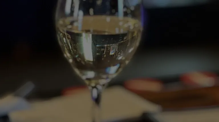 a burger and a glass of wine
