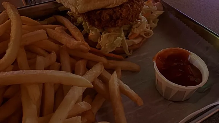 Burger, fries, bar