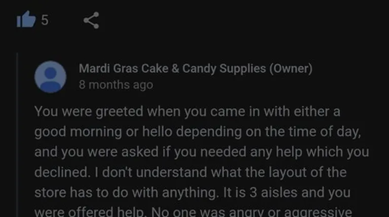 If customer service were an Olympic sport, Jill the owner at Mardi Gras Cake & Candy Supplies would win gold in rudeness and hostility. Entering the store was like stepping into a dystopian nightmare where politeness had been outlawed and basic human decency was punishable by exile.From the moment I walked in, I was greeted not with a friendly smile, but with the icy glare of someone who clearly resents both their job and the very concept of your existence. When I dared to ask a question, the owner (Jill) sigh so deeply, I thought she might collapse from the sheer effort of tolerating a customer.The owner (Jill) has raised rudeness to an art form, blending hostility, arrogance, and complete disregard for basic manners into one delightfully toxic package. It's as if she graduated from the School of Sociopathy with honors.I thought, "Maybe they're having a bad day." I realized bad days are just their lifestyle. They don't just refuse to help you; they seem to revel in your inconvenience.Zero stars!