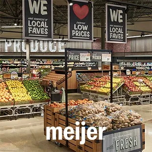 Great new grocery/department store in Avon! The last time I set foot inside a Meijer was 20 years ago when I was in college at Ohio State, and I loved it, so I was excited to hear that one was opening in my area!Meijer brings some competition for Walmart since it's also open 24 hours and it's just a few miles away. Their grocery selection is great, and from what I've seen so far, the produce is very fresh! Much better than Giant Eagle! The meat selection is good and on sale prices are very competitive with other retailers. I noticed that their selection of organic grass-fed meats and organic produce is a bit lacking though. Also their fresh seafood section is fairly small. The deli is huge though and they carry Dietz and Watson meats! Not as good as Boar's Head that Fresh Thyme carries, but it's still good quality. The don't have much in the way of prepared foods except for rotisserie chicken, pasta salads, sushi, and pizza by the slice which didn't look that appealing to me. The bakery seems fine though.The department store section of the store is great! They have electronics, pet supplies with a tropical fish area, clothing, kitchen supplies, a Pharmacy, an outdoor home and garden area and more! Oh, they have a Starbucks, Great Clips, and a nail salon inside too! There's also a gas station out front that has plastic gloves you can use to pump gas if you're a germaphobe! I've never seen this at any gas station before. What I like most about Meijer is the M Perks rewards app. They have coupons you can e-clip and you get rewards in the form of dollars off your purchase from making purchases in the different categories like fresh meat, produce, health and beauty, etc. I saved $8 off my last purchase! You also earn discounts on gas. Using M Perks is easy....Just scan your phone or manually enter your phone number and PIN when you check out!Checkout is a breeze since they have a whole bunch of self checkout machines one each end of the store. I've never had to wait more than a minute or two even when it's been busy. The machines are really simple and intuitive too.Come check out the west side Meijer and see for yourself!
