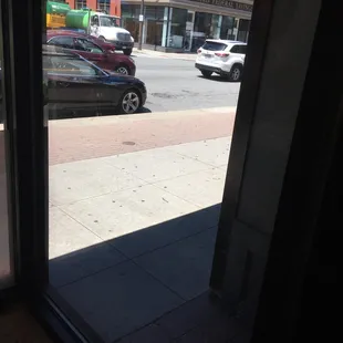 There are a few two tops on each side of the entry and the street view was enjoyable.