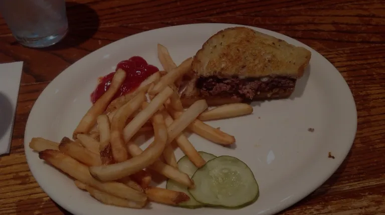 Came in on a Monday afternoon for lunch. Good food, good service, good beer selection.First order of business...do NOT use the map Yelp! shows as to where this place is. The address is right, but the map puts you in the middle of a residential neighborhood. Follow Chris' directions below in his review from 2008.They had a special menu with a Patty Melt on it, so that's what I got. Wasn't asked how I wanted it cooked, not that it matters since every burger is cooked well at any place I've been. But this place. The burger was medium well, with a bit of pink in the middle. It was delicious. The fries were good, thin and crispy, but nothing I would order for the sake of french fries. The rest of the patty melt was very good, but a little smaller than I expected.The help was very courteous and friendly. If you can find this place, stop in. If I'm in the neighborhood again, I would come back.