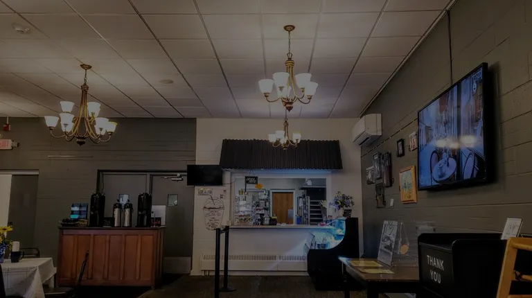 Has a coffee shop vibe for ambiance. The food is excellent and made there. They keep the menu manageable but they don't shortchange on ingredients or quality. The breakfast quiches are thick and filling for a day of exploring, shopping, recreation or just hanging out. At lunch add chicken to your salad and you won't be disappointed. Generous portion of the chicken salad with all breast meat. These folks try hard and succeed for this small seasonal restaurant. Order at the window and they will bring food out to you. There are also a few to-go items in the cooler near the order window.