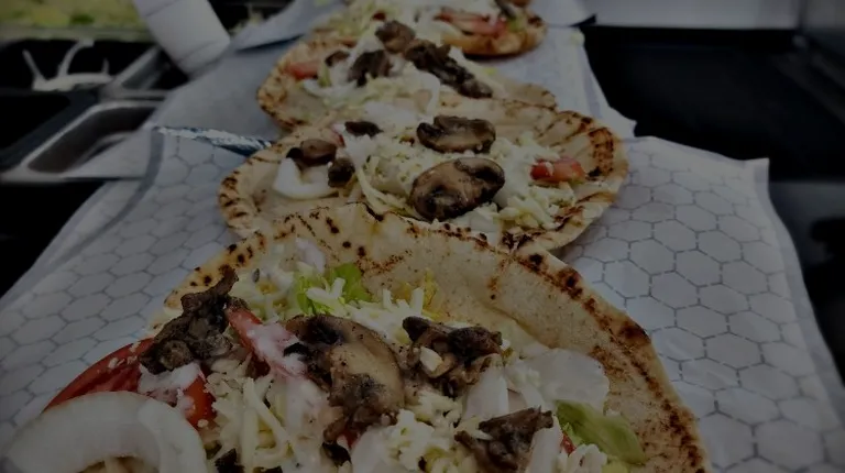 a row of pita sandwiches