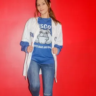 Our upstairs sports lounge, with a full bar, a TV wall, and tons of memorabilia!