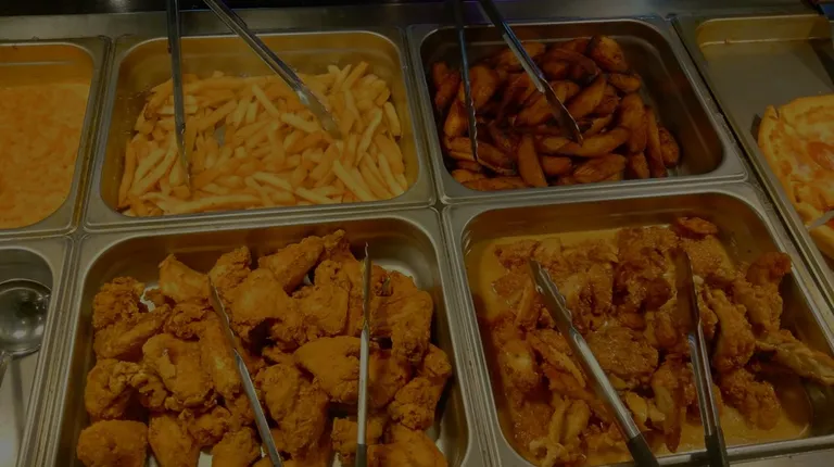 Food is lowkey not that good and a lot of stuff just tasted like nothing with different textures. I think the best tasting food there is the canned fruit but overall price is good for what you get and i like the atmosphere. The workers were really nice.